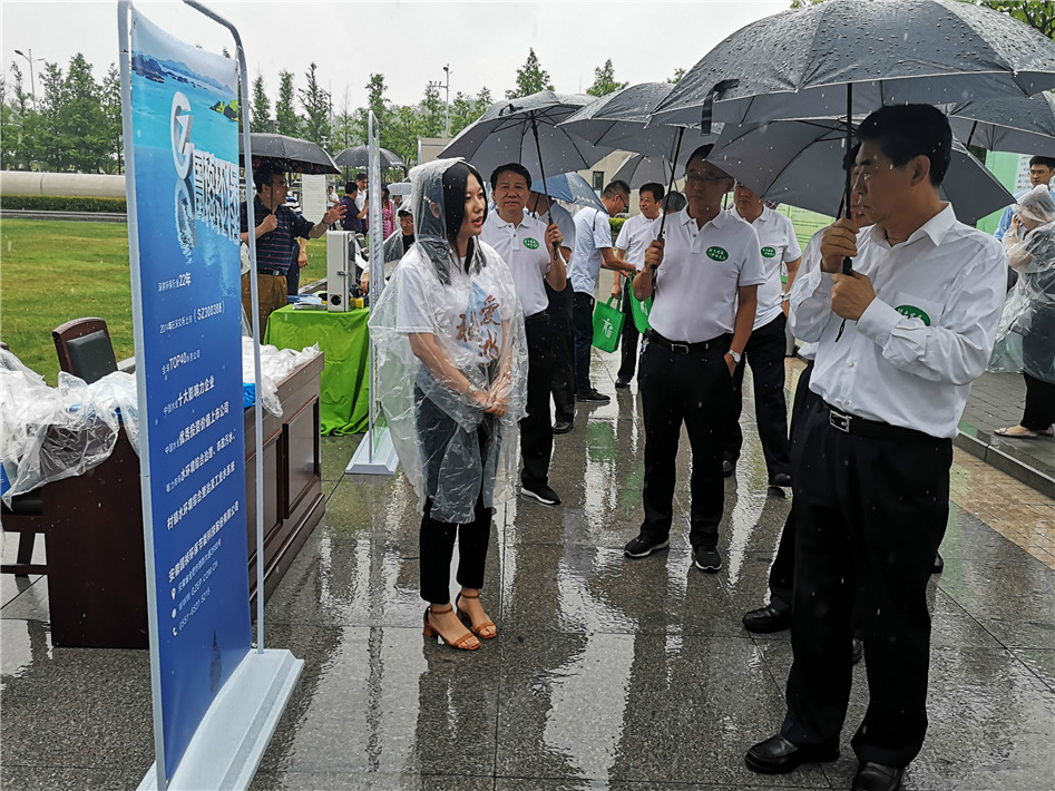 向陽帶隊雨中參觀國禎環(huán)保展區(qū),對公司業(yè)務(wù)進(jìn)行詳細(xì)了解
