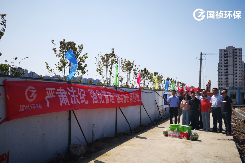 8月7日,國禎集團(tuán)董事局執(zhí)行主席、公司董事長李泓萱、副總經(jīng)理徐本勇、殷皓、經(jīng)營總監(jiān)徐輝等一行來到小倉房污水處理廠、胡大郢污水處理廠,領(lǐng)導(dǎo)們走進(jìn)廠區(qū)、走進(jìn)施工項目部,走訪慰問奮戰(zhàn)在一線的員工。在小倉房污水處理廠三期建設(shè)項目部,詳細(xì)了解三期建設(shè)進(jìn)度,叮囑大家落實防暑降溫措施,確保高溫生產(chǎn)安全。