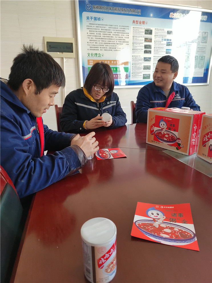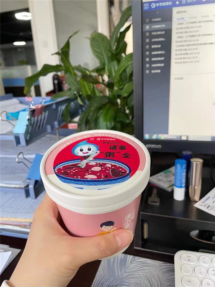 陜西彬縣由于疫情防控需要,當?shù)刂挥袔准也惋嬮T店營業(yè),無法訂到現(xiàn)煮熱粥。彬縣國禎行政人員為了讓廠區(qū)職工喝上應(yīng)季的“臘八粥”,克服重重困難于1月9日23點采購到聽裝八寶粥。