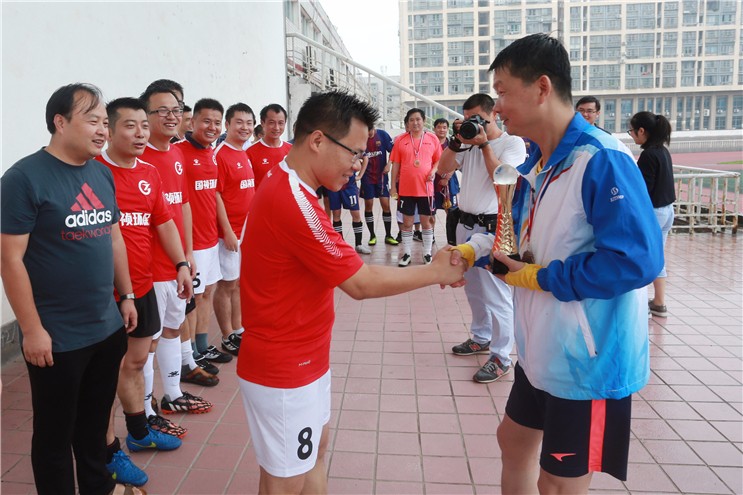 “首屆國(guó)禎環(huán)保足球邀請(qǐng)賽”由國(guó)禎環(huán)保主辦,合肥水務(wù)系統(tǒng)、上海市政設(shè)計(jì)六院、合肥市政設(shè)計(jì)院協(xié)辦,8月26日上午在安大龍河路校區(qū)開(kāi)賽。經(jīng)過(guò)單循環(huán)賽后,9月3日上午舉行冠亞軍及三四名爭(zhēng)奪賽。最終,合肥市政設(shè)計(jì)院足球隊(duì)摘得桂冠,國(guó)禎環(huán)保足球隊(duì)勇奪亞軍。國(guó)禎環(huán)保副總經(jīng)理徐本勇、經(jīng)營(yíng)總監(jiān)徐輝、財(cái)務(wù)副總監(jiān)王祥宇現(xiàn)場(chǎng)參賽、觀賽,并為獲獎(jiǎng)球隊(duì)頒獎(jiǎng)。