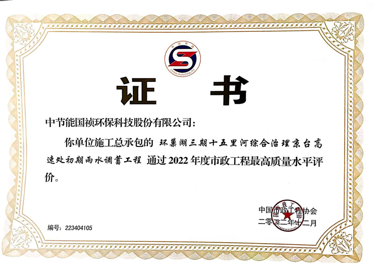 12月27日,“2022年市政工程建設(shè)產(chǎn)業(yè)博覽會” 暨中國市政工程最高質(zhì)量水平評價頒獎大會在長沙開幕。中節(jié)能國禎總承包的“京臺高速處初期雨水調(diào)蓄項目”通過2022年度“市政工程最高質(zhì)量水平評價”。同時,我公司作為建設(shè)單位的清溪凈水廠PPP項目和胡大郢污水處理廠PPP項目也獲此殊榮。