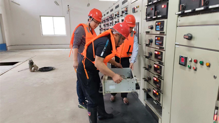 隨著演練總指揮的一聲令下,演練正式開始。參演人員立即按照演練方案要求各司其職,在廠區(qū)大門口、在線間門口、配電房門口等重要區(qū)域設置防汛沙袋,對廠內(nèi)低洼積水區(qū)域設置水泵進行強排,為減少財產(chǎn)損失,將辦公樓一樓電腦、打印機、資料等貴重物品搬至二樓,對配電柜底部抽屜抽出放置在高處,對在線設備進行拆除。隨著雨勢持續(xù)加大,河道水出現(xiàn)倒灌,廠內(nèi)已形成內(nèi)澇,為保障員工生命安全,總指揮下達撤離命令,在撤離過程中模擬搶救受困人員撤離。通過參演人員在演練過程中的分工合作、緊密配合,本次演練取得圓滿成功。