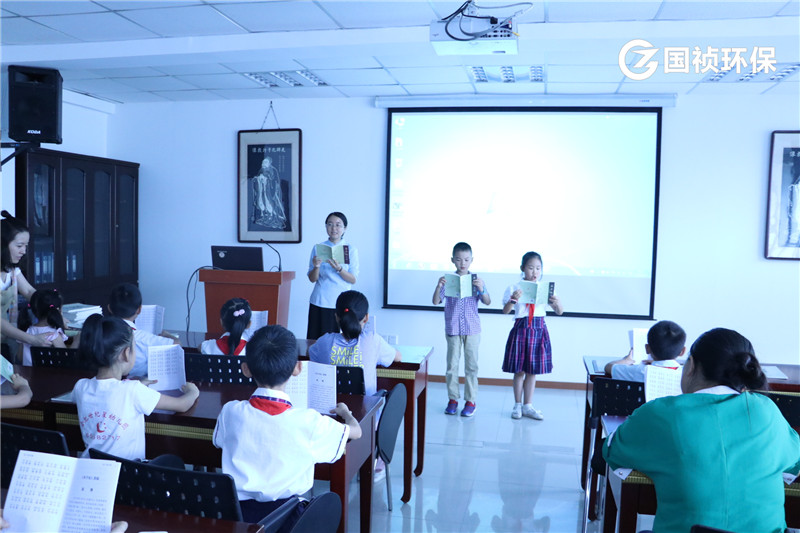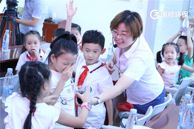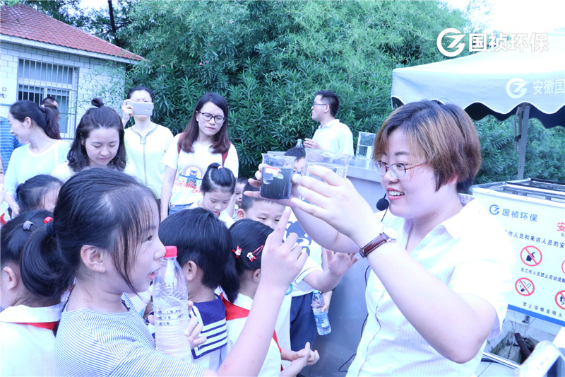 國(guó)禎環(huán)保陳晶晶給小朋友介紹介紹污水處理流程